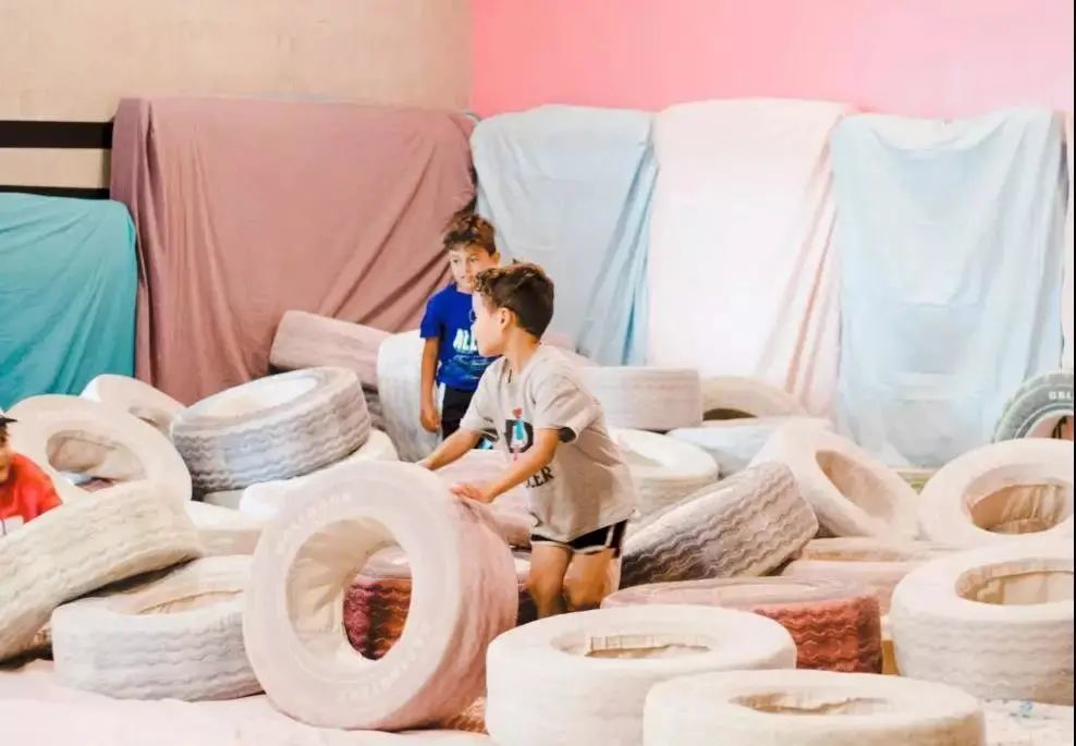 “无规则和例外”的简单游戏,房间可容纳40多个床垫和160多个“枕头”轮胎,供儿童(和成年人)玩耍,爬行