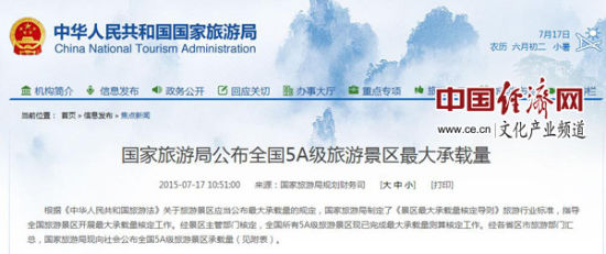 国家旅游局出台《景区最大承载量核定导则》