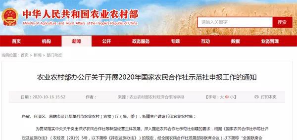 农业农村部关于开展2020年国家农民合作社示范社申报工作的通知