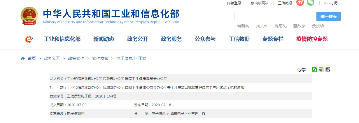 三部门关于开展第四批智慧健康养老应用试点示范的通知