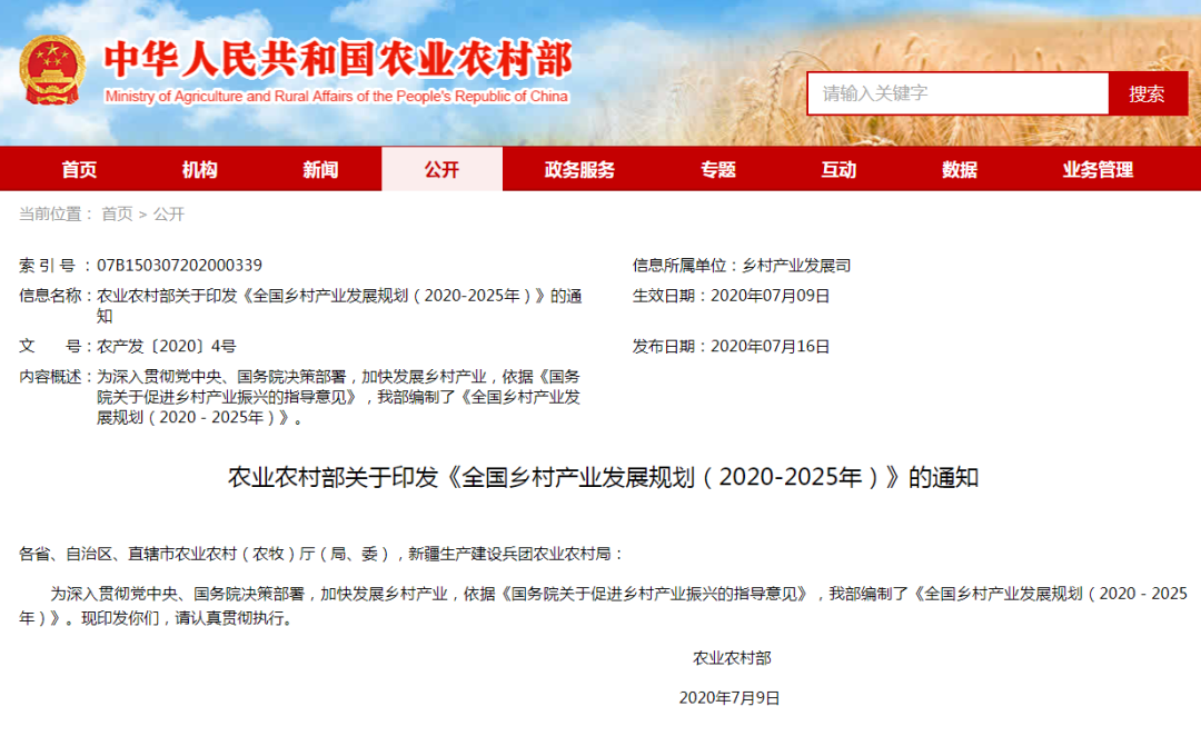 《全国乡村产业发展规划(2020-2025年) 》(1)