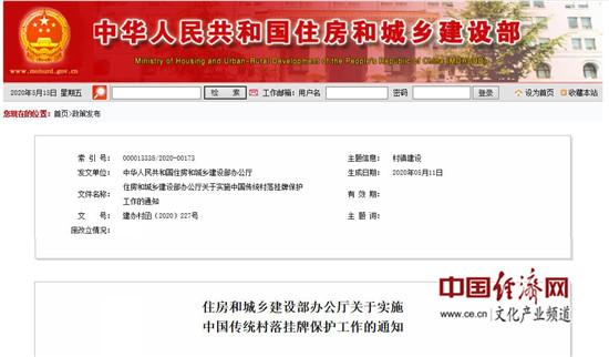 经济日报-中国经济网北京5月15日讯 日前, 《住房和城乡建设部办公厅关于实施中国传统村落挂牌保护工作的通知》(以下简称“《通知》”)正式公布。《通知》明确,所有列入中国传统村落名录的村落都要设置标志牌,原则上各地要在2020年12月底前完成挂牌工作。省级住房和城乡建设部门及相关部门负责本行政...