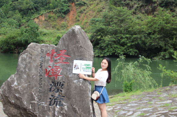 顺着325国道往石台方向继续前进,从鱼龙洞到怪潭景区差不多需要1个小时,公路路况非常好。这是一个季节性漂流的景点,路过时候还是有不少外地游客在此漂流玩水,继续上图。