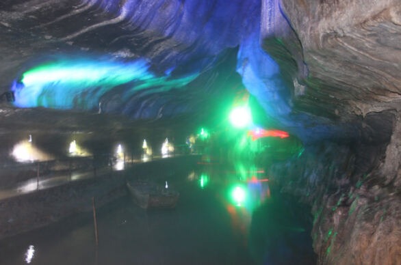 我们9点30分从屯溪出发,10::30左右出了陵阳高速,我们先来到了鱼龙洞,已经快11点了,它是九华山国家地质公园,国家AAAA级景区。位于石台 县东部七都镇六都乡境内,过了一座桥右转,就能直达景区了。鱼龙洞洞口如鳄鱼嘴,全长有5000多米,游人既可徒步浏览,又可乘木舟漫游。