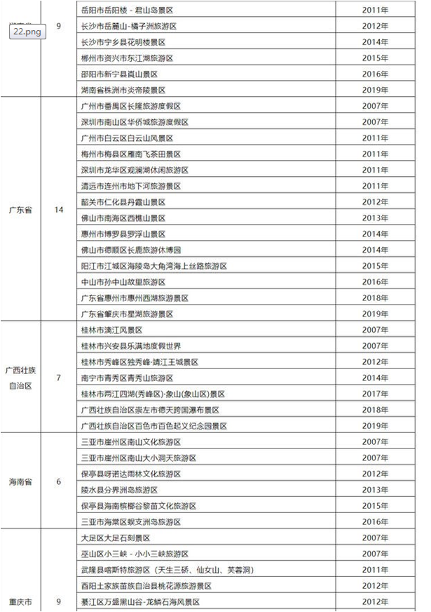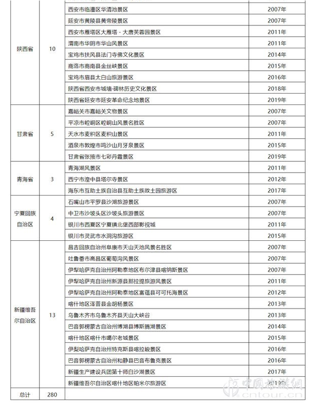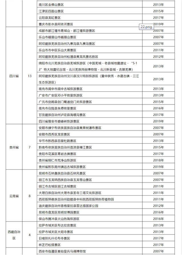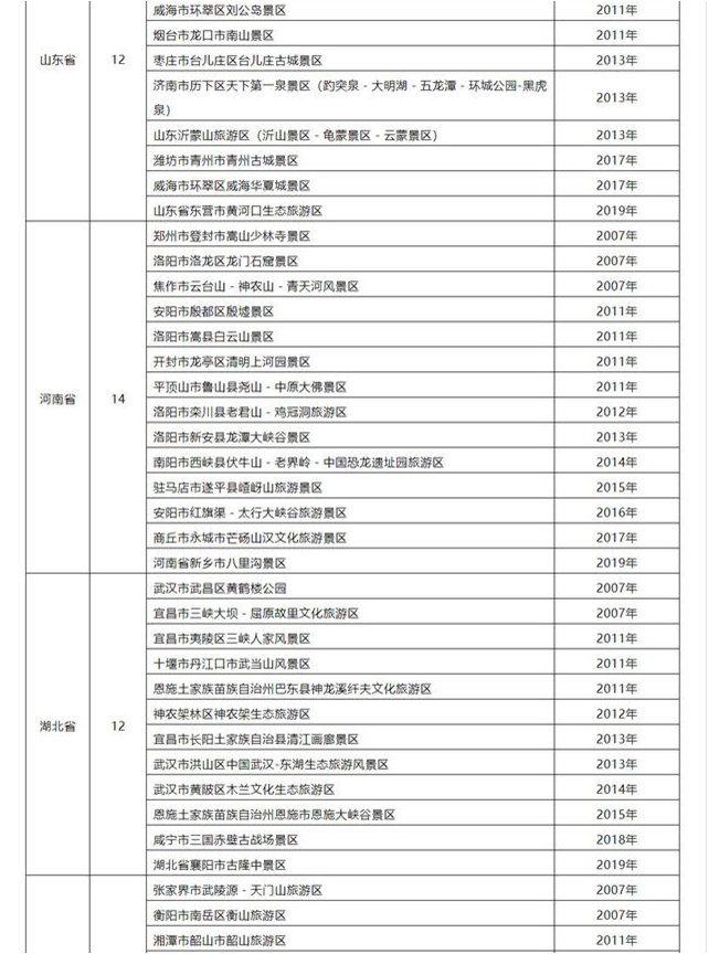 国家5A级旅游景区完整名单(280家)(上)