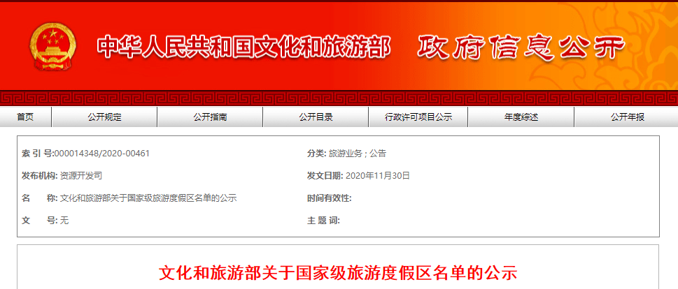 文化和旅游部关于国家级旅游度假区名单的公示