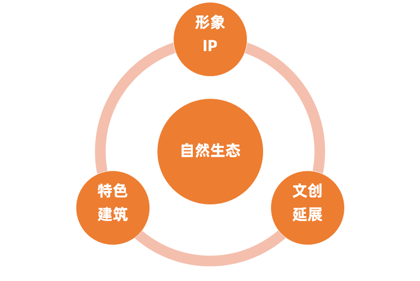 1. 依托自然资源,通过赋予文化内涵,以塑造形象IP、特色建筑营造主题氛围,推动产业升级改造;