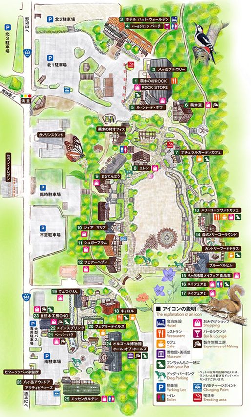 萌木之村位于日本山梨县北社市清理高原,占地16.7万㎡,是一个集森林酒店、旅游礼品店、度假村、创作工房为一身的乡村旅游度假综合体,称为“被森林拥抱的休憩空间”。