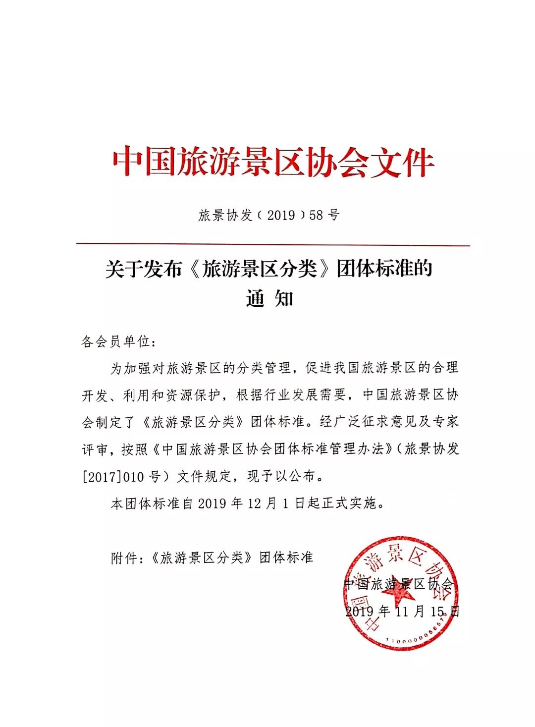 近日,中国旅游景区协会发布了关于《旅游景区分类》团体标准的通知,本团体标准自