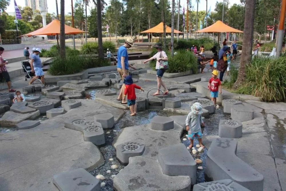 设计从达令港的工业历史出发,通过抽象的艺术形式,使游乐场再现澳大利亚各大河流的景象。