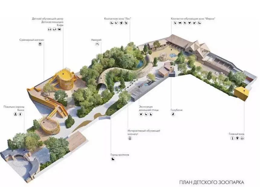 莫斯科萌宠儿童乐园设计了儿童、成人和动物同等地位,在有限的空间内为动物提供了最舒适的环境,同时为不同年龄段的儿童提供各种季节性的活动项目,向孩子们展示动物是如何在自然栖息地生活的,这一设计让动物园里最贫瘠、人迹罕至的地方之一重新恢复了生机。