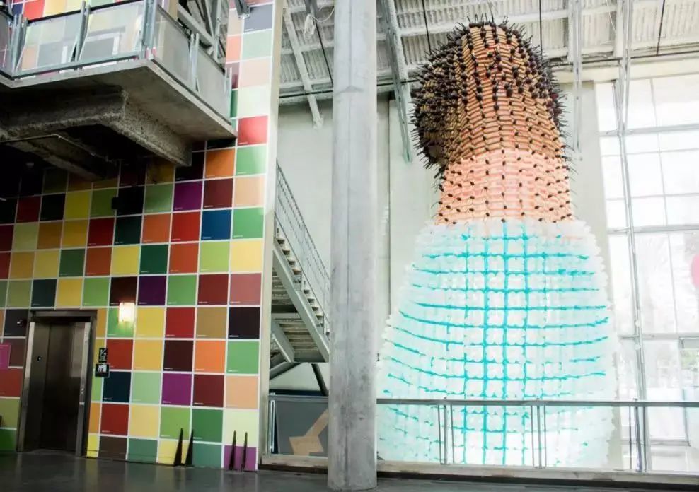 生物形态雕塑,由14,000个乳胶气球制成,高50英尺,宽30英尺,悬挂在馆内的中庭,供家庭游客参观。