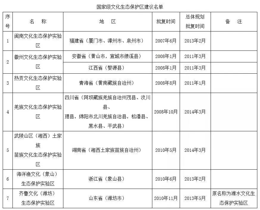 根据《国家级文化生态保护区管理办法》(文化和旅游部令第1号)和《文化和旅游部办公厅关于贯彻落实〈国家级文化生态保护区管理办法〉的通知》(办非遗发〔2019〕47号),经专家评审和实地暗访等工作程序,最终确定了通过验收的国家级文化生态保护区建议名单。同时,根据工作需要,对个别国家级文化生态保护实验区的名称进行了变更。