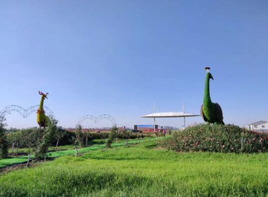 置身玫瑰花海孔凤迎宾引客来:走进石龙湖田园综合体,在2020年农户丰收主会场展区一路之隔,就是占地200亩的玫瑰花海。粉色、艳红、黄色等各色的玫瑰花,将庆丰收的喜悦气氛衬托地更加浓郁。“心花怒放”“心心相印”“蝶恋花”“彩蝶飞舞”“花香四溢”“五彩花田”等11种不同造型的主题。走在玫瑰开放的小路边,芳香扑鼻而来,令人心旷神怡。绚丽多彩的花儿密密匝匝地托在枝叶上,如一张张喜悦的笑脸,朝着人们欢笑,这慷慨的笑容来自美丽的大自然。