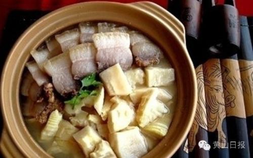 徽州第一怪,长毛的豆腐是上等菜”。所谓“毛豆腐”是一种形象化的叫法,豆腐切块,经过发酵后,形成了一层茸毛,就像豆腐长了一层长长的毛发一样。“毛豆腐”下油锅煎制后,就热取而食之,鲜美无比。作为徽州的特色小吃之一,“徽州毛豆腐”既是旅游者必选之食品,也是徽州普通百姓的最爱。