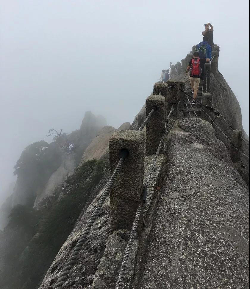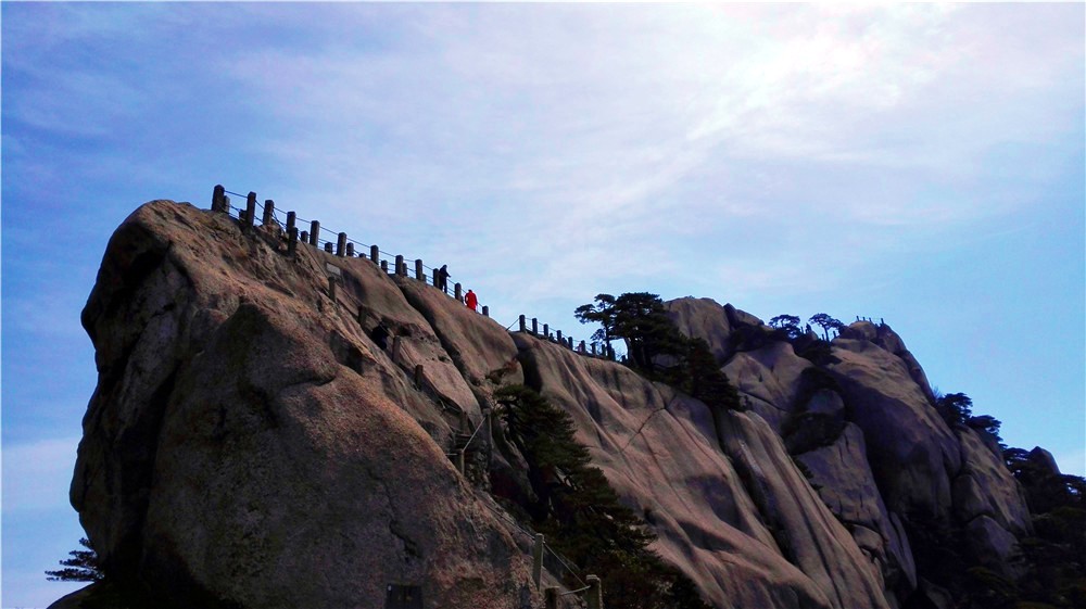 这“金鸡叫天都”,同样也是人们口中的“五老上天都”。自龙幡坡上回头望,“金鸡”已不见,却见五块大石如五位老翁,携手持杖,向天都峰顶攀登,被称为“五老上天都”,又称“老人峰”。