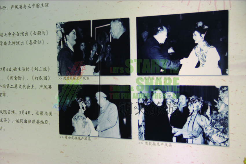 第一进是正厅,里面摆满了严凤英生前的剧照。在短短半小时的浮光掠影间,严凤英的辉煌演艺生涯一一展现在我们面前。文化站还在天井安装了电视,让游客在参观的同时,可以聆听严凤英细腻传神的歌喉。