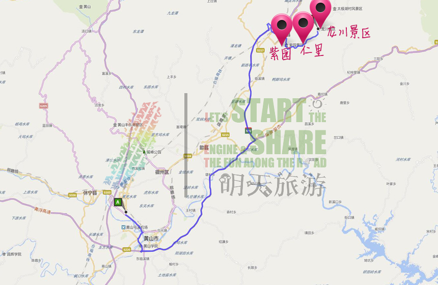 屯溪出发,G56杭瑞高速转S01溧黄高速,绩溪高速口下,转X086县道,途径紫园,仁里,龙川
