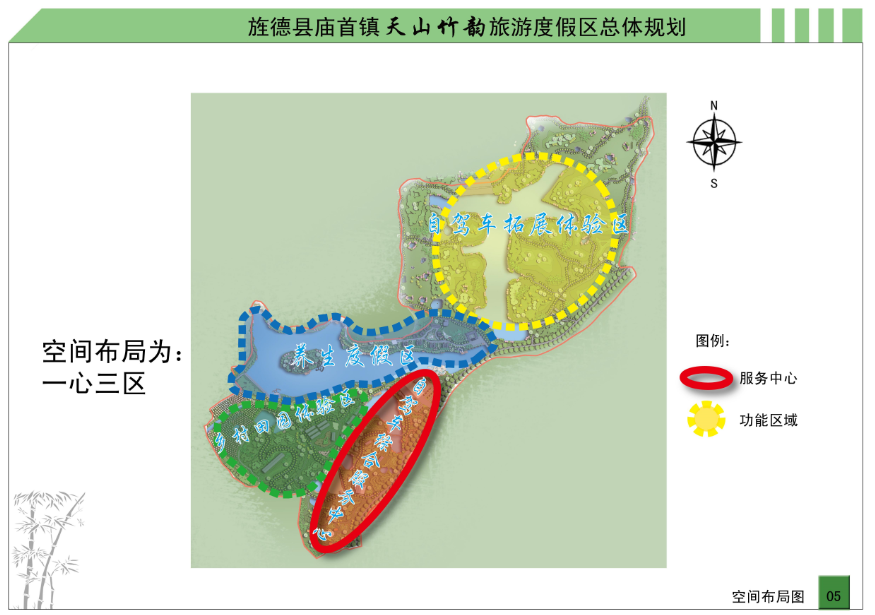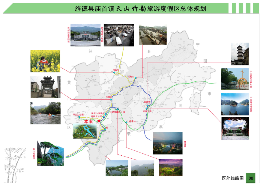 以旌德县大旅游区为背景,创新旅游产品,依托创意性养生度假旅游产品,考虑市场的需求特征和景区的发展需要,规划将旅游区的主题形象定位为:山水田园风光、养生度假乐园,竹韵山水间怡情养生处。